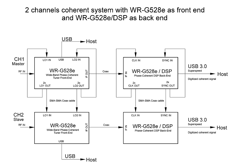A dual-channel phase-coherent system could be based on two identical, interconnected WR-G528e/DSP modules. This would provide excellent phase stability